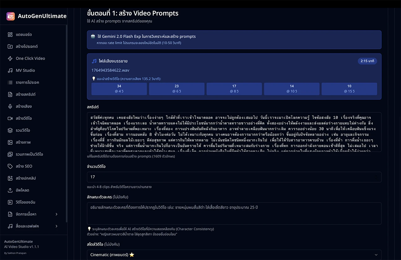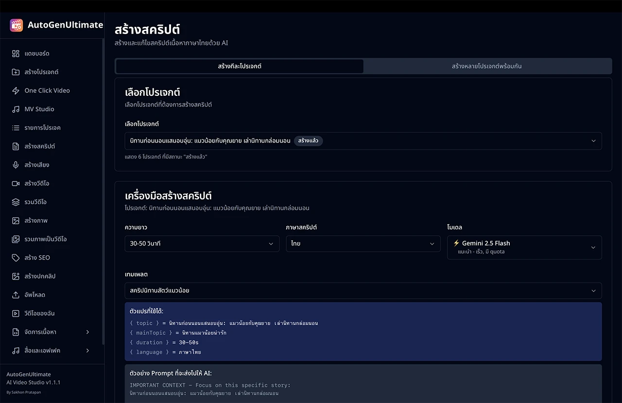 - ระบบสร้างสคริปต์ด้วย Gemini AI
